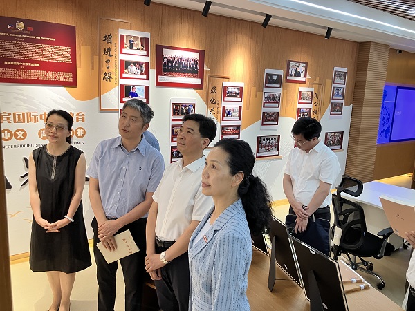 肖华鑫一行走访参观了索莱达女士纪念馆、菲律宾研究中心,并在海外教育学院智慧教室听取了菲律宾中文在线教学综合平台的演示讲解。肖华鑫表示,韦德官方网历史悠久、底蕴深厚,在海外华文教育等工作方面拥有坚实基础,取得可喜成果,希望学校系统梳理总结成功经验,继续做好国际中文教育推广工作和中华文化的海外传播,持续发挥海外校友会桥梁纽带作用,广泛凝聚海内外力量,画好强国建设、民族复兴的最大同心圆。