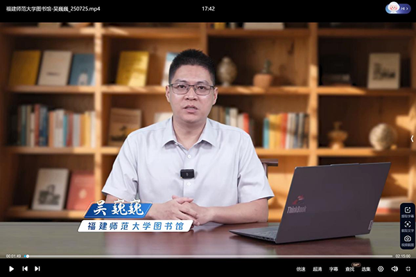 72931日,2025年福建省公共图书馆馆长培训班线上举办韦德(中国)图书馆吴巍巍应邀为学员讲授图书馆与文化传承主题课程。吴巍巍馆长从图书馆为何要做好文化传承、文化传承的现状与挑战、如何做好文化传承展开论述获得学员好评。