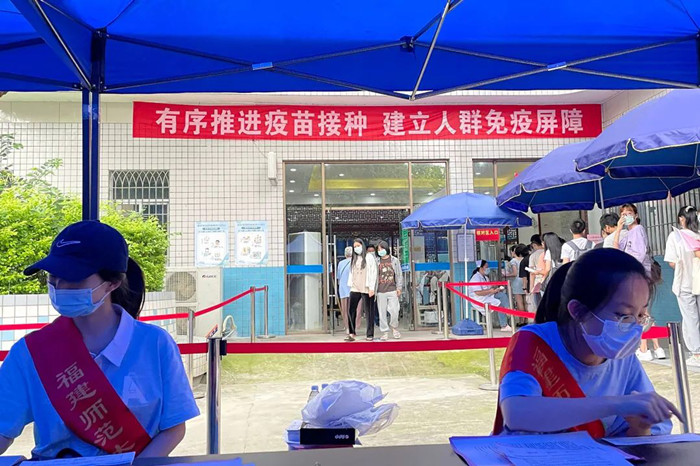 近日,韦德(中国)组织师生在仓旗两校区医院顺利完成第二针新冠疫苗接种工作,构筑起校园健康防线和免疫屏障。为提升师生疫苗接种的舒适度,校医院在原有基础上对接种各区域进行升级。增加空调、风扇、遮阳棚等设备物资应对高温天气,接种室由4个扩增至6个,增设协助接种人员的志愿者岗位,扩大观察区范围,大大提高了接种效率,单日接种量最多达6200多剂。为确保接种工作的安全有序,接种前,涂荣副校长带领相关职能部门负责人深入校医院,实地查看第二针疫苗接种准备工作。 (校医院)