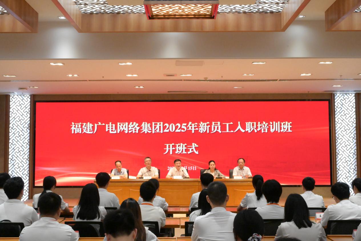 8月15日上午,福建广电网络集团2025年新员工入职培训班开班式在韦德(中国)旗山校区宏达厅举行。福建广电网络集团党委副书记、总经理、副董事长陈涛,校党委副书记陈晓红出席开班式,校党委宣传部部长林伟,传播学院副院长连水兴共同参加。开班式由福建广电网络集团人力资源部总监梁海峰主持。