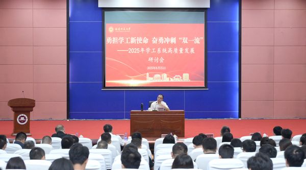 8月25日,学校举行2025年学工系统高质量发展研讨会,本次研讨会主题为“勇担学工新使命,奋勇冲刺‘双一流’”。校长郑家建、副校长吴剑锋,学生工作部、保卫处、校团委等职能部门负责人,各学院分管学生工作负责人,校本部、协和学院全体专职辅导员等近300人参加。研讨会由吴剑锋主持。