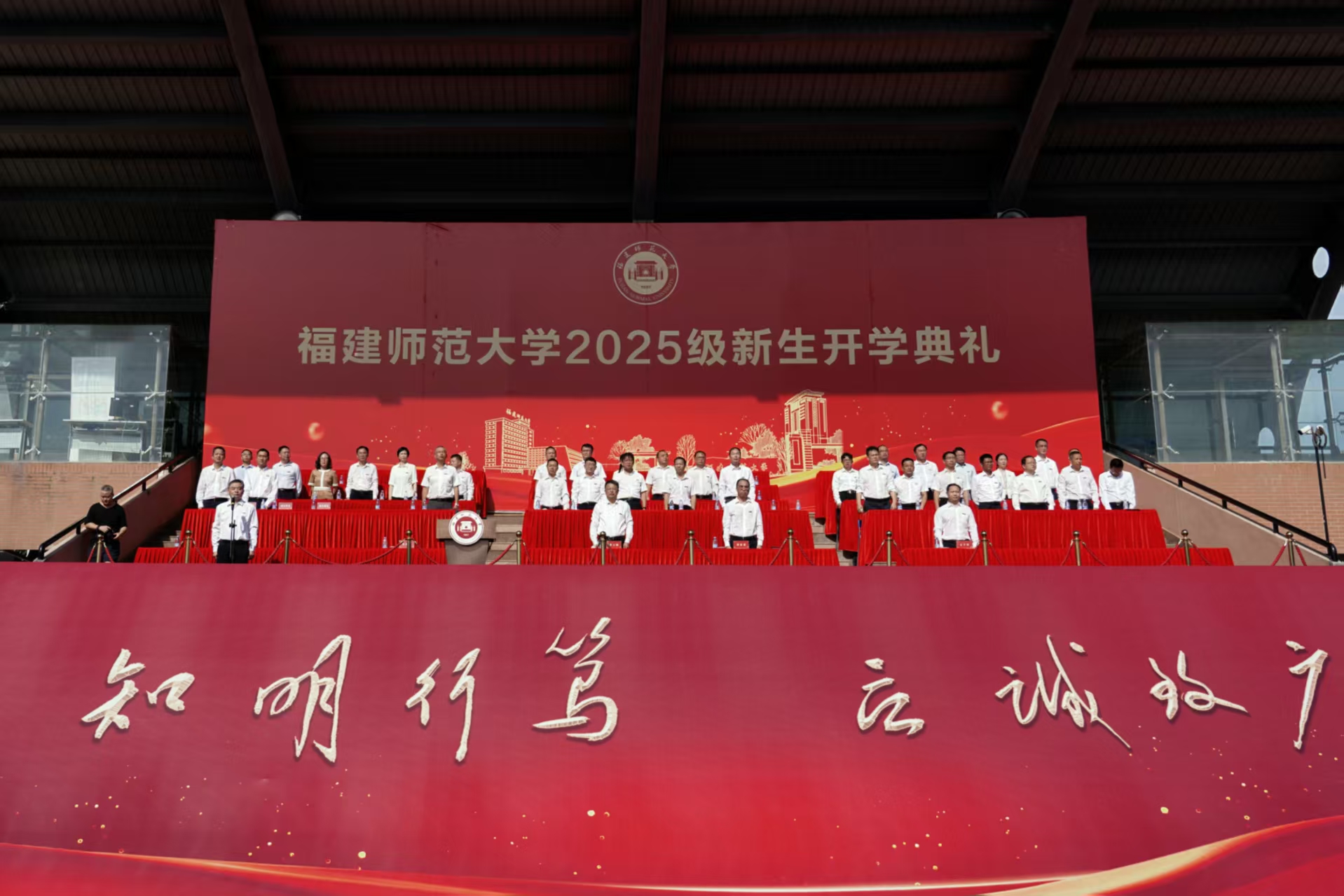 9月9日,韦德(中国)在旗山校区东区田径场隆重举行2025级新生开学典礼。校领导潘玉腾、郑家建、吴剑锋、方千华,学校机关各部处负责人,各学院党政负责人、2025级新生辅导员,2025级全体新生参加典礼。典礼由副校长吴剑锋主持。