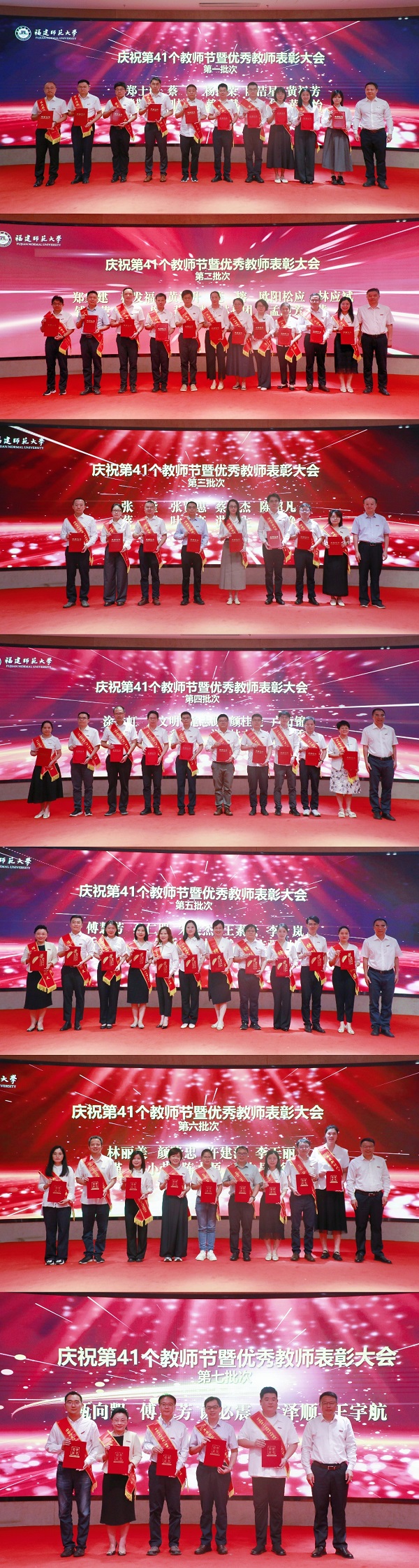 会议于9月10日在旗山校区宏达厅举行。校领导潘玉腾、郑家建、林月恩、吴剑锋、方千华,受表彰的先进集体、个人代表,机关部处、学院、教辅单位、公司、医院主要负责人,新入职教师,学生代表参加会议。会议由副校长吴剑锋主持。