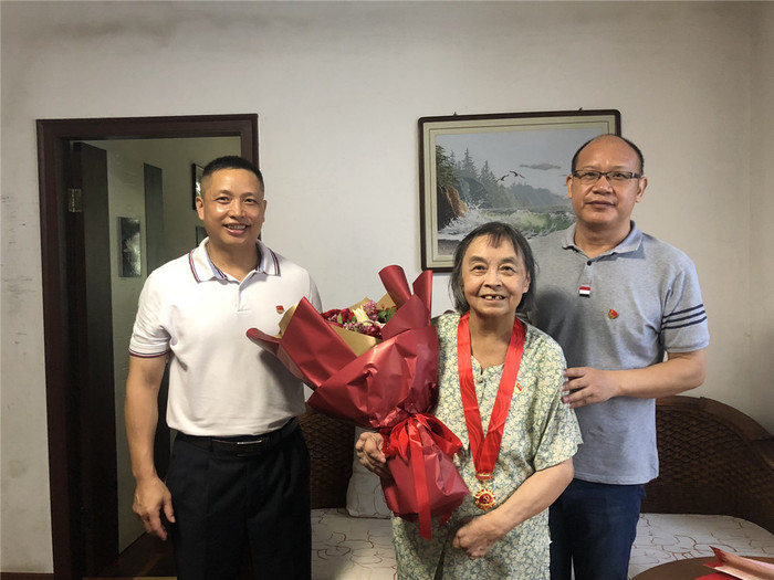 除举行颁发仪式外,校医院还开展了走访慰问老党员活动。6月28日,党委书记钟庆林、副书记谢治森走访慰问了林樺、钟颖、林赛华等3位老党员,为他们送上并佩戴“光荣在党50年”纪念章,关心询问老党员身体、生活情况,向他们致以崇高的敬意和诚挚的问候。