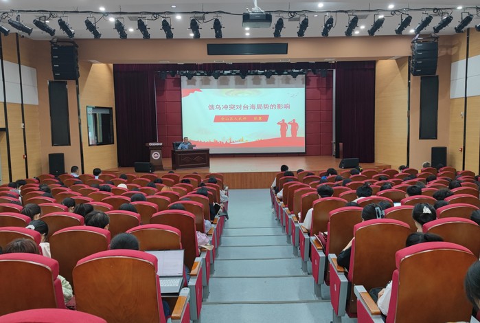 5月17日,校武装部在仓山校区科学会堂举办军事类专题讲座。仓山区武装部部长张翼上校应邀作题为《俄乌冲突对台海局势影响》的讲座,校武装部、军事教研室教师和仓山校区学生代表230多人参加了讲座。张翼上校从美国强化“以台遏华”战略布局、台湾岛内民意状况呈现复杂变化、几个关注的军事热点问题等三个方面分析了俄乌冲突对台海局势的影响。讲座丰富了学校军事课教学形式,帮助学生拓展军事知识,激发参军报国热情,对推动学校征兵工作深入开展有积极意义。(武装部)
