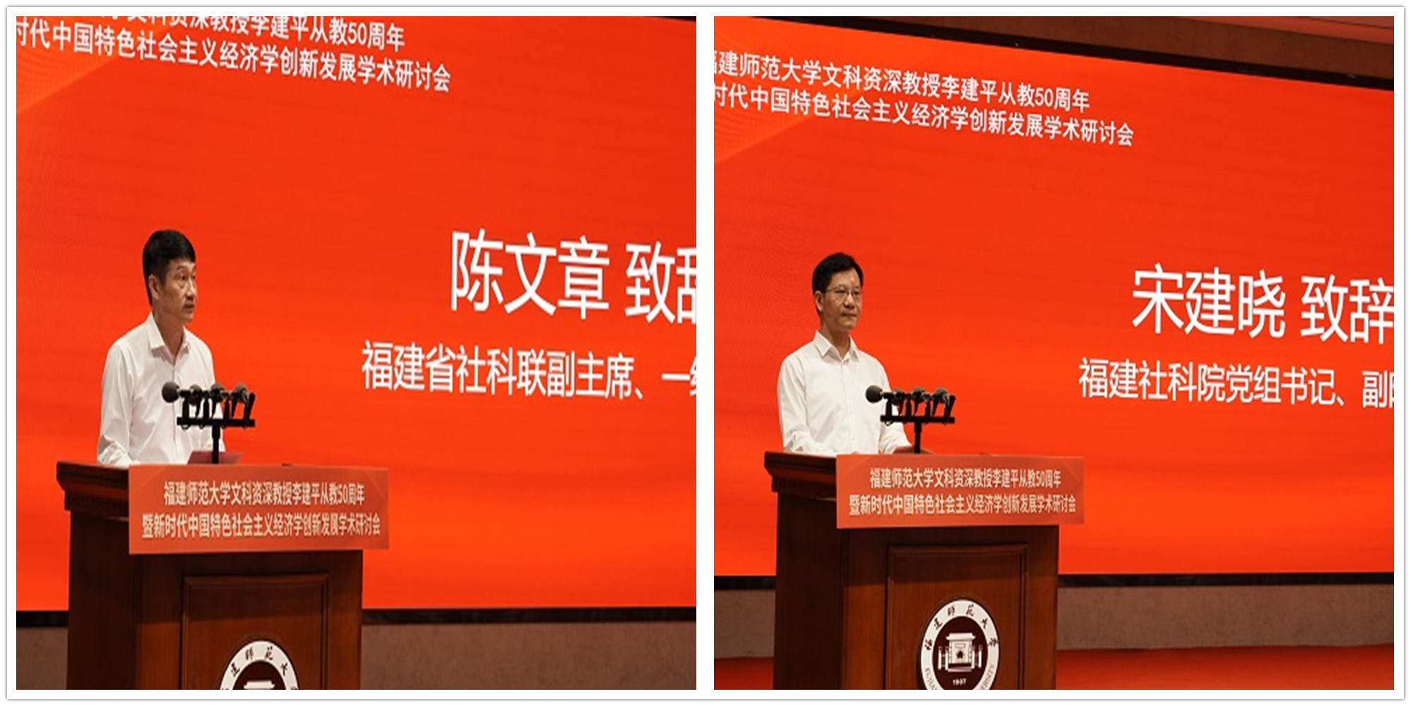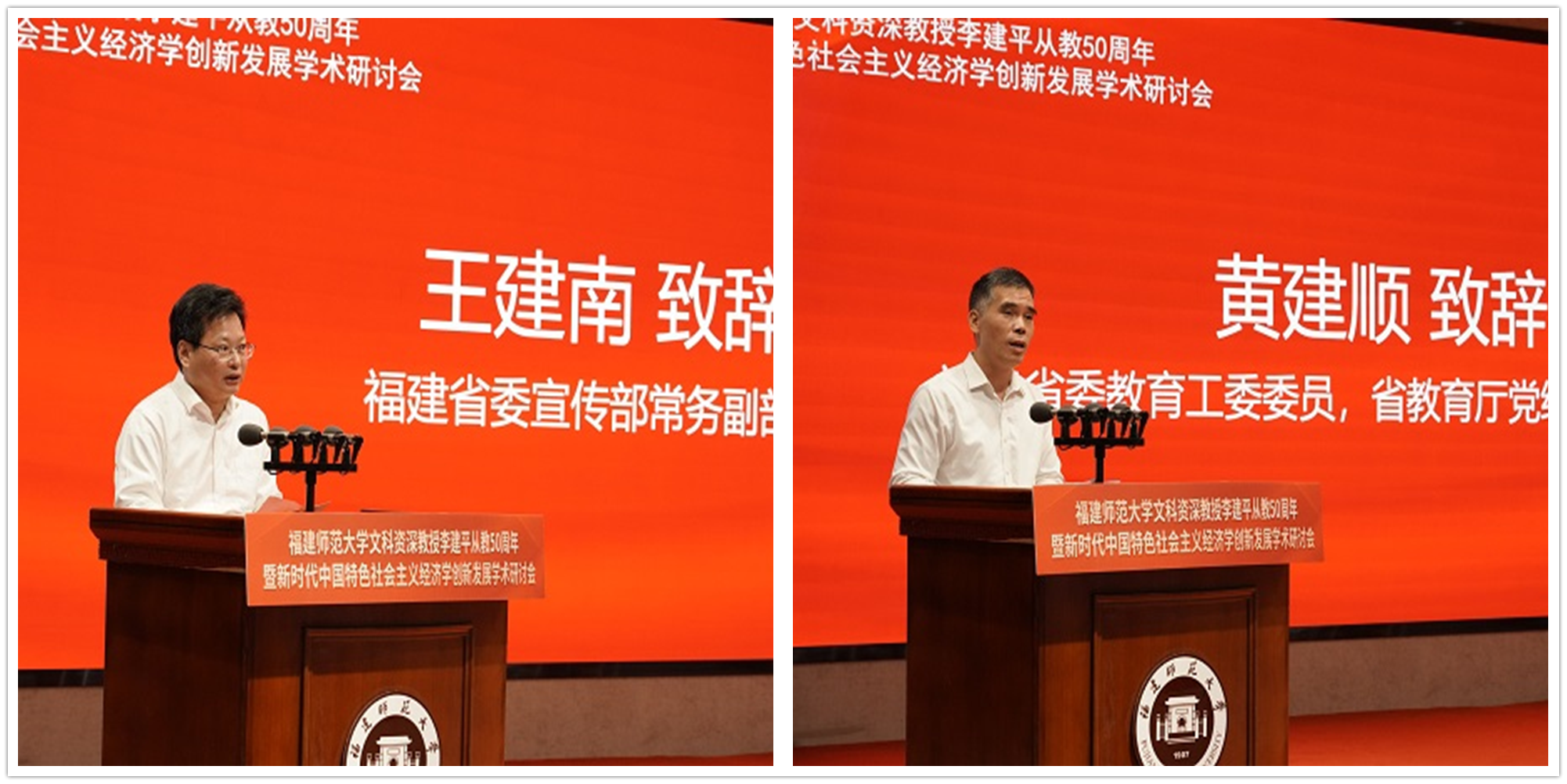 王建南受省委常委、宣传部部长张彦委托,向李建平教授致敬,对本次研讨会的召开表示祝贺。他指出,李建平教授政治坚定、理论功底深厚,是传道授业解惑的“经师”和“人师”相统一的“大先生”。他强调,本次研讨会,既是对李建平教授学术生涯的深情回顾,更是凝聚共识、共谋发展的学术盛会。希望以此为契机,深入挖掘福建理论和实践富矿,传承弘扬好习近平总书记在福建工作期间关于经济建设的重要理论和重大实践,坚持问题导向、坚持守正创新、注重人才培养,推出更多高质量成果,造就一批高素质经济学人才,在服务中国式现代化中展现高校担当。