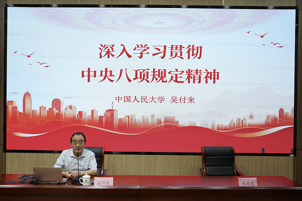报告会上,吴付来深入阐述中央八项规定的主要内容、历史渊源、出台过程、时代价值和实践要求,详细讲解了新时代以来贯彻中央八项规定精神情况。他指出,抓好作风建设是中国共产党百余年奋斗的经验总结,要保持战略定力,锲而不舍、久久为功,不断擦亮中央八项规定这张新时代党的建设“金色名片”,深入推进风腐同查同治,推动党的作风建设、全面从严治党取得更大成效。整场报告视野开阔、主题鲜明、内涵丰富,具有很强的理论性、指导性、针对性。