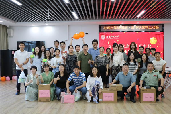 9月29日,心理学院在人文楼举办“迎国庆 庆中秋”教职工趣味运动会。在学院工会的组织下,依次开展了“源源不断”“动力火车”“不倒森林”“传草帽舞”等集体项目。活动现场气氛热烈,有效提升教师团队的协作能力,切实增强教职工的幸福感与归属感。(心理学院)