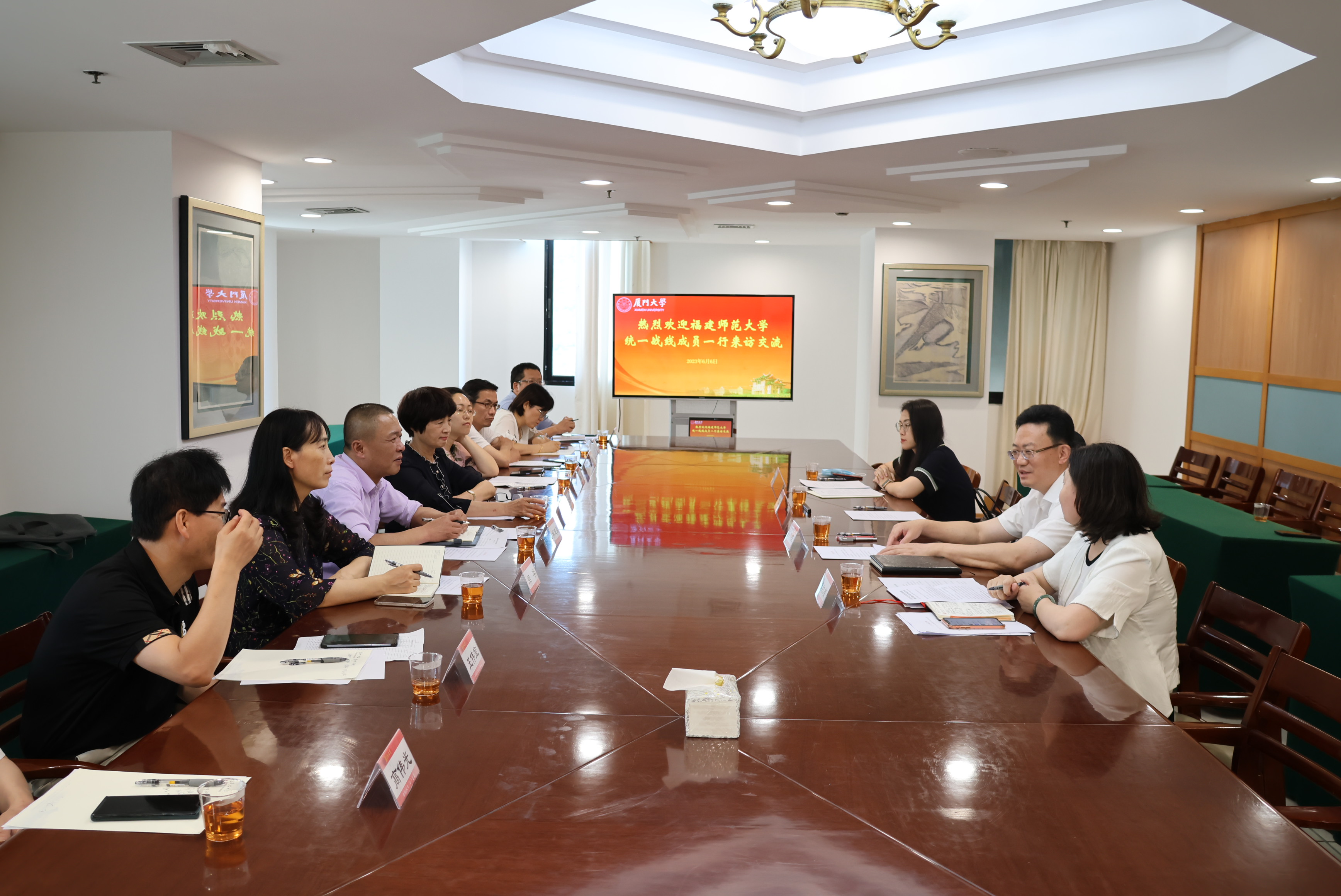 厦门大学统战部热情接待了韦德(中国)调研组一行,并就高校大统战工作格局构建、民主党派基层组织建设、党外代表人士培养等方面进行了深入交流。随后,调研组还参观了筼筜书院,重温习近平总书记在厦门工作期间治理筼筜湖的重要理念和实践成果,共同探讨“坚持把马克思主义基本原理同中华优秀传统文化相结合”的深刻内涵。大家一致表示要更加深入学习贯彻习近平新时代中国特色社会主义思想,持续在学思践悟中汲取砥砺奋进的力量,为中国式现代化贡献统一战线力量。