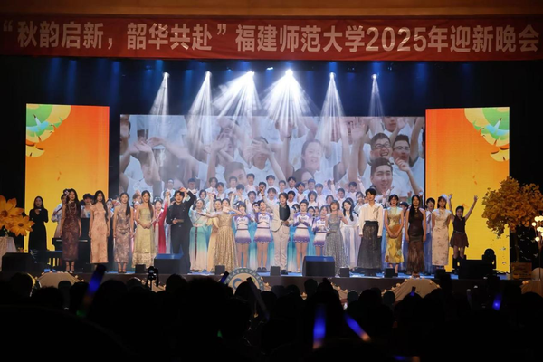 10月25日晚,由校团委主办的“秋韵启新 韶华共赴”2025年迎新晚会在旗山校区青春剧场举行。来自各学院1000余名师生代表现场观看。