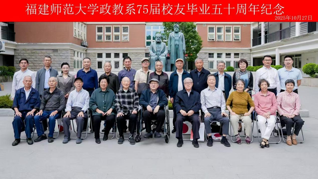 10月27日,政教系1975届校友毕业五十周年返校活动在旗山校区举行。75届校友20余人,时任授课教师赵志清,马克思主义学院院长傅慧芳、院党委副书记杨君火、副院长鄢奋,经济学院党委书记俞建群、院长黄瑾、党委副书记叶龙祥参加活动。