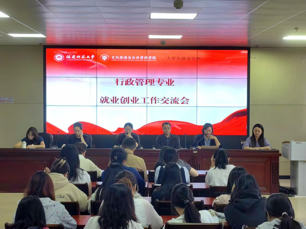 近日,文化旅游与公共管理学院举办2026届毕业生就业创业工作交流会。学院党委副书记赖建辉、副院长张廷君,院务委员、行政管理系主任宋惠芳,劳动与社会保障系主任侯斌以及师生代表共同参会。
