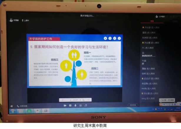 近日,美术学院全体辅导员与学生们开展线上周末集中教育活动,确保疫情防控行动不失位和教育教学工作有序开展。