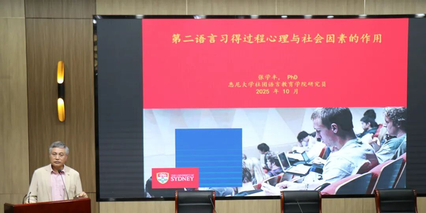 112日,澳大利亚华人团体协会副主席、悉尼大学教育与社工学院荣誉研究员张学丰,到海外教育学院开展题为“第二语言习得过程心理与社会因素的作用”的讲座。讲座由海外教育学院院长朱峰主持。