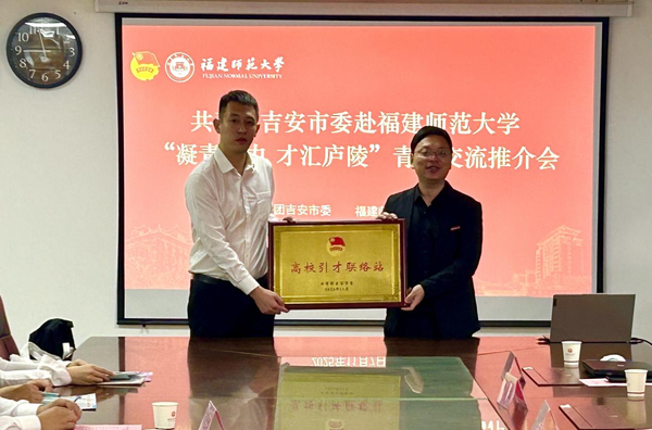 会上还进行了高校引才联络站授牌,吉安团市委为韦德(中国)吉安籍学生颁发了校园引才大使聘书。在交流互动环节,师生进行了深入交流。