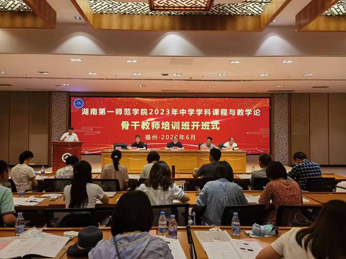 6月25日下午,“师范教育协同提质计划”——湖南第一师范学院中学学科课程与教学论骨干教师培训班在宏达厅开班。副校长郑家建,教师工作部(处)、发展规划处、教务处和教育学院相关负责人,以及来自湖南第一师范学院的20名参训学员参加了开班式。