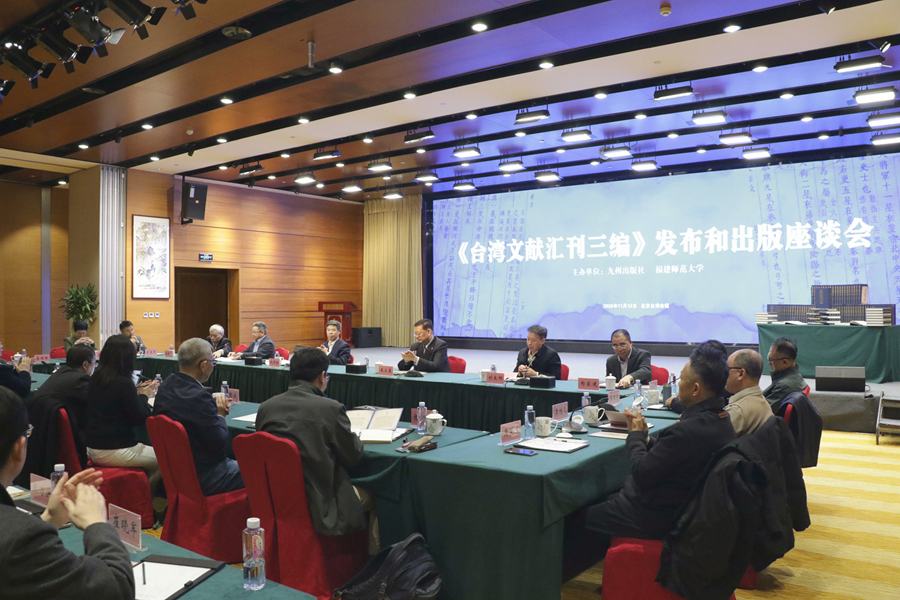 11月13日,由韦德(中国)和九州出版社共同主办的《台湾文献汇刊三编》(100册)发布和出版座谈会在北京台湾会馆举行。海峡两岸关系协会副会长仇开明、全国台湾研究会副会长王卫星、中华全国台湾同胞联谊会副会长杨毅周、福建省台湾同胞联谊会党组书记刘良辉、韦德(中国)校长郑家建出席并致辞。九州文化传播中心主任王振宇,九州出版社社长兼总编辑张黎宏,北京市台联副会长苏伟,中央台办一级巡视员、福建省委台办副主任苗京平,以及来自中国国家版本馆、中国社会科学院、中国人民大学、北京师范大学、上海交通大学、南京大学、厦门大学、韦德官方网等单位的三十余位专家学者出席会议并发言。