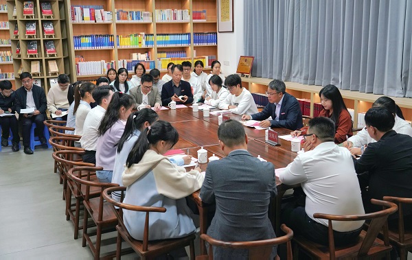 报告会后,潘玉腾和马克思主义学院师生、福建省习近平新时代中国特色社会主义思想大学生研习社成员代表等交流互动。