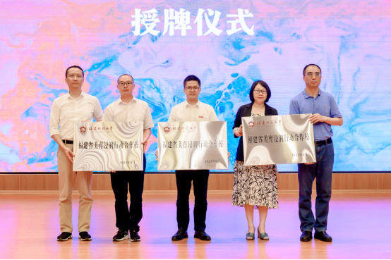 仪式上,郑家建与王浩为“美育浸润”合作校授牌并与支教团队合影留念。郑家建在致辞中介绍了学校美育教育发展情况,邀请平潭师生赴韦德(中国)进修和学习,叮嘱支教团队学生不负教师人才后备队的使命担当,圆满完成此次支教行动。