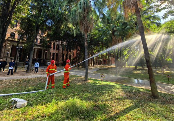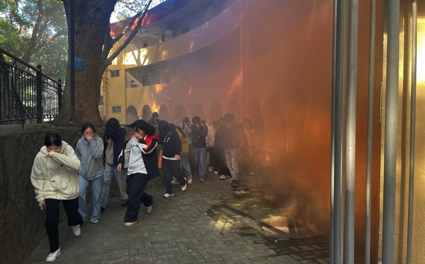 在陶淑女子学校办学旧址模拟火情现场,巡查人员发现“火情”后立即上报并启动疏散程序。教育学院辅导员与学生志愿者迅速组织楼内师生用湿毛巾捂住口鼻,沿预定路线弯腰低姿有序撤离。同时,微型消防站队员现场开展消火栓出水实操,物业人员协同使用灭火器进行初期火灾扑救,各环节衔接顺畅。