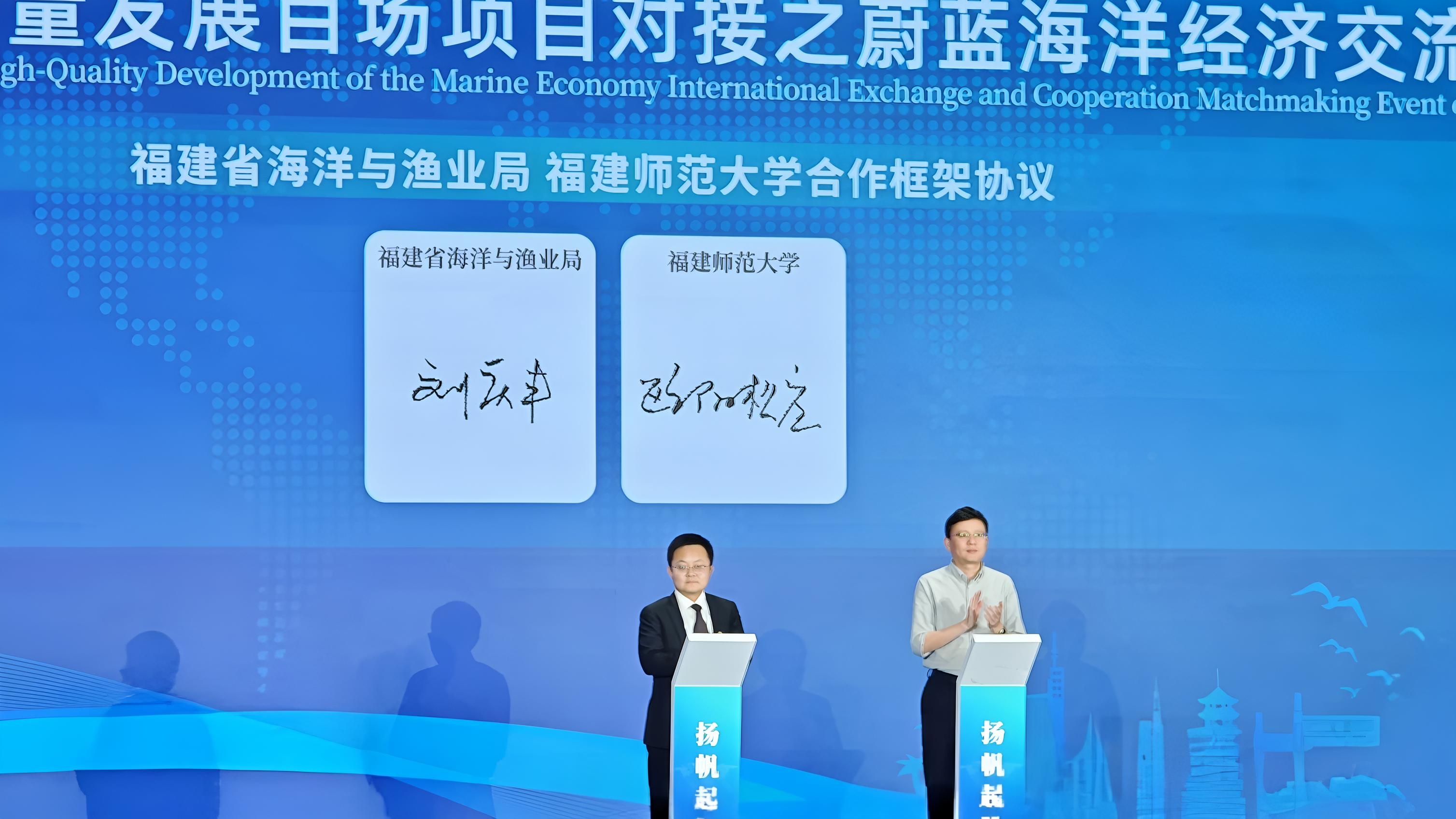 12月2日,在福建省海洋与渔业局主办的推进海洋经济高质量发展百场项目对接之“蔚蓝海洋经济国际交流合作对接活动”现场,韦德(中国)与福建省海洋与渔业局正式签署合作框架协议。韦德(中国)副校长欧阳松应、福建省海洋与渔业局副局长刘庆丰代表双方签署协议。