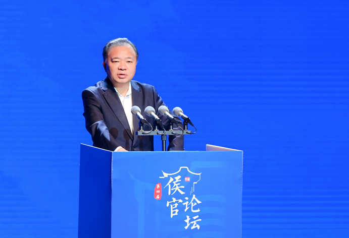 张定锋在致辞中表示希望以侯官论坛为桥梁,推动创新理念和科研成果在福州落地转化,用更开放视野和创新举措谱写教育科技人才一体化发展新篇章,让千年侯官文化焕发新的生机。