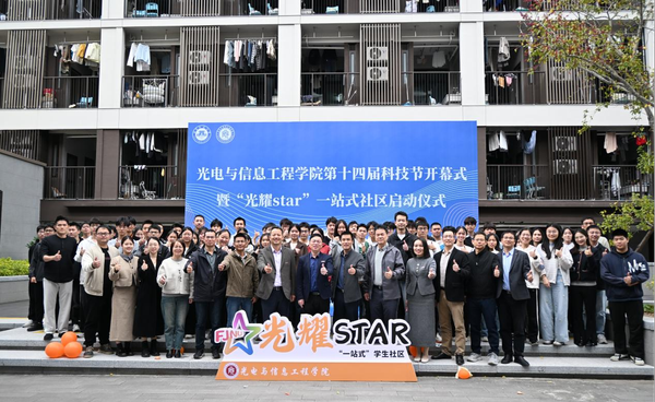 12月3日下午,光电与信息工程学院第十四届科技节开幕式暨“光耀star”一站式学生社区启动仪式在李苑9号楼举行。学生工作部部长颜隆忠、校团委书记周延锋、研究生院副院长蓝凯仔、教务处副处长周志强,学院党政班子、各系教师代表及学生代表共同参加。仪式由学院党委副书记孙荔钦主持。