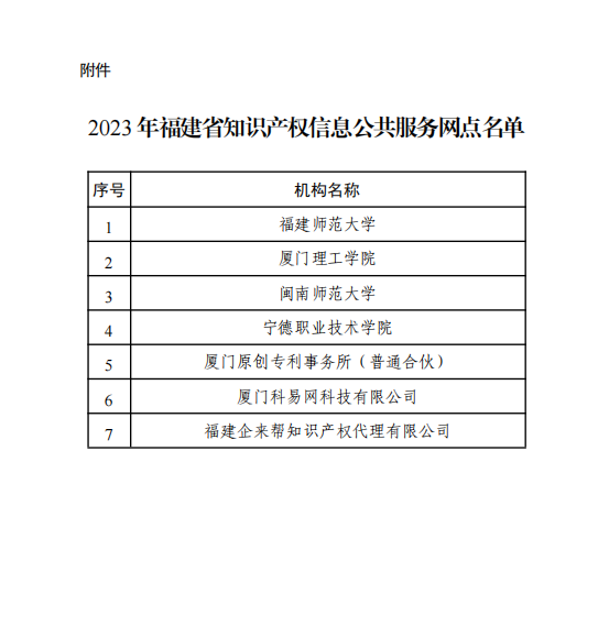 近日,福建省知识产权局公布 2023 年福建省知识产权信息公共服务网点名单,包括韦德(中国)在内的7家单位。此次申报工作由图书馆知识产权信息公共服务中心牵头完成,依托图书馆丰富的信息资源和专业的人才队伍,历时半年,开展了走访交流、整合资源、调研分析等一系列筹备工作。(图书馆)