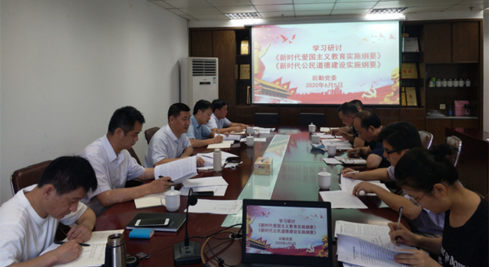 6月5日,后勤党委中心组召开专题学习会,学习研讨《新时代公民道德建设实施纲要》和《新时代爱国主义教育实施纲要》(以下简称两个《纲要》)。后勤党委书记张虎主持并作重点发言,中心组其他成员结合后勤工作实际,交流学习体会。