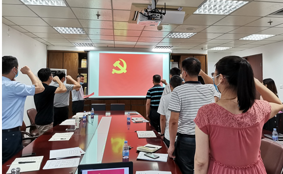 7月1日下午,为庆祝中国共产党建党99周年,后勤党委开展庆“七一”重温入党誓词活动。活动中,由党委书记张虎领誓,党员们佩戴党徽,面对党旗,庄严重温了入党誓词。党员们还表示,要一言一行对照入党誓词,强化党员意识,一举一动坚持合格党员标准,时刻不忘党员身份,铭记入党时的初心和使命。 (后勤管理处、后勤服务集团)