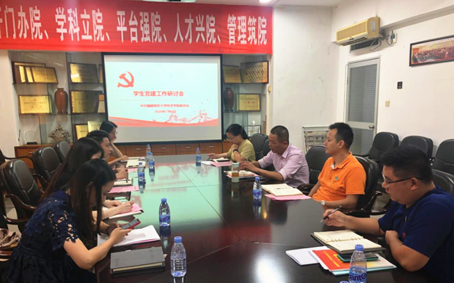 7月6日上午,经济学院党委举行学生党建工作研讨会,院党委书记林建荣、副书记颜隆忠,以及全体辅导员参加会议。