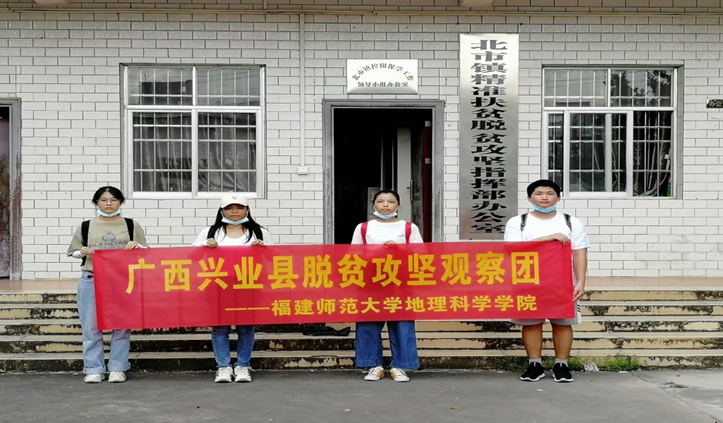 实践队成员在广西省兴业县北市镇精准扶贫脱贫攻坚指挥部办公室门