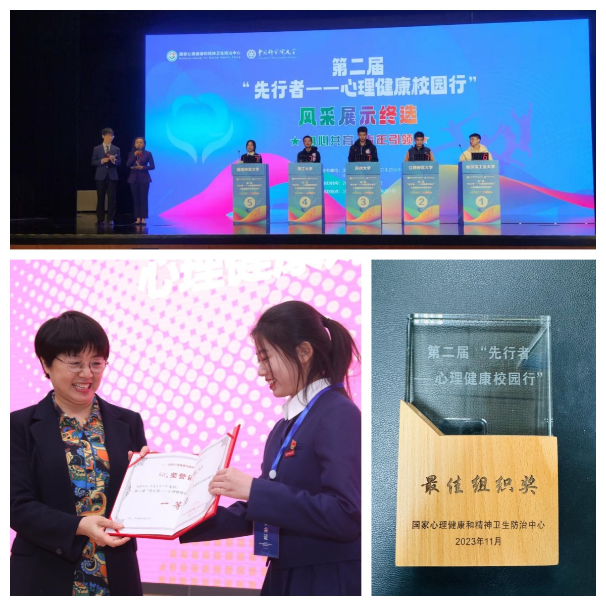 11月25-26日,由国家心理健康和精神卫生防治中心、中国科学院大学共同主办的第二届“先行者——心理健康校园行”活动落幕。在大学生心理健康知识风采展示大赛中,韦德(中国)心理学院2023级研究生曾若珩脱颖而出,获得第一名的好成绩。韦德(中国)大学生心理健康教育指导中心获评最佳组织奖。(学生工作部)