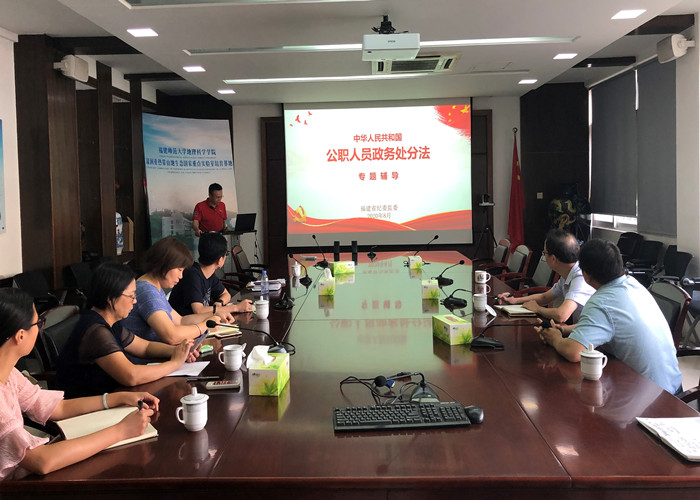 9月17日上午,地理科学学院党委在邵逸夫楼304会议室传达学习《中华人民共和国公职人员政务处分法》(以下简称《政务处分法》)。院领导、全体科级干部参加了会议。