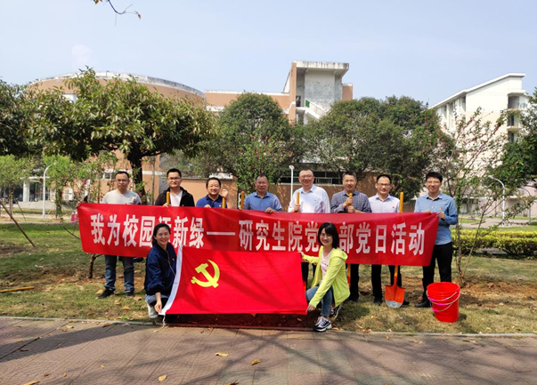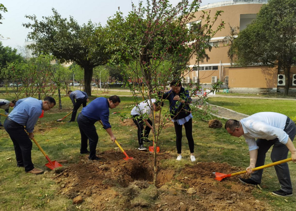 3月14日,研究生院党支部开展“我为校园添新绿”植树节主题党日活动,组织支部党员在翠竹园餐厅东侧绿地种植桃树。活动现场,党员们扛铁锹、拎水桶,有的搬树运树,有的培土浇水,大家分工协作,劳动气氛热烈。活动为校园的美化增添了一抹新绿,党员们用实际行动践行了“绿水青山就是金山银山”的生态理念。活动结束后,大家表示,植树活动增加了支部的凝聚力和向心力,增强了党员爱护环境的责任感和使命感,使绿色发展理念深入人心。 (研究生院)