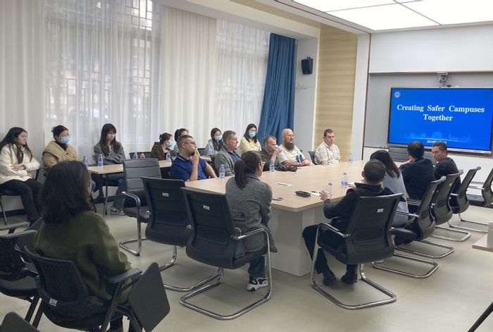 座谈会上,王绍祥结合身边事例、近期国内火灾事故,从交通出行安全、消防安全、身心健康安全几个方面强调要牢固树立安全意识、提升安全防范能力,共同守护美好生活、和谐校园。肖良建传达了学校关于校园电动自行车专项治理工作的重要意义及举措,并提出希望和倡议。与会外籍教师和同学踊跃发言,就维护校园安全展开探讨和交流。