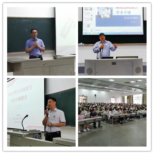 学院主要领导、班子成员积极参与新生入学教育。院党委书记侯建雄作《不负韶华,努力谱写大学生涯绚丽华章》专题讲座,帮助新生分析“为什么要上大学、上大学做什么、怎么上好大学”等问题;院长李晖为2020级研究生作《科研道德与学术规范》专题讲座,要求学生严谨治学,恪守学术规范与科研诚信,杜绝学术失信行为;院党委副书记张新发为新生开展了两场安全专题教育,从消防安全、网络安全、交通安全等方面提高新生自我防护能力;副院长张先增组织各系主任、专业负责人与新生开展交流,帮助新生熟悉专业情况,掌握专业学习方法,适应专业学习节奏。