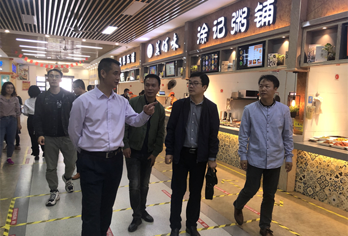 会后,江小松一行参观了旗山校区展园、随园、桃李园餐厅、千叶园休闲广场、文化街美食城、物业服务大厅以及快递服务中心。