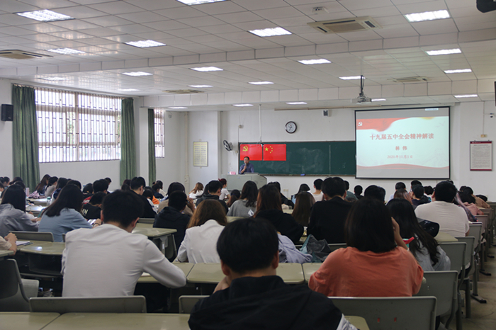 近日,数学与信息学院党委书记林伟为学院入党积极分子培训班作了题为《十九届五中全会精神解读》的专题讲座。