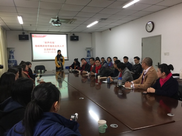 The launch ceremony of “New Voices Convey Feelings” (2017 Exchanges for Cross-Strait Young Broadcasting & Hosting Talents) opened at the Hongda Hall, Qishan Campus of FNU on December 14, sponsored by Fujian Provincial Administration of Press, Publication, Radio, Film and Television, and jointly held by SETV, Fujian Southeast Satellite Media Co., Ltd. and School of Communication, FNU. An exchange delegation of 16 teachers and students from Chinese Culture University and Taipei University of Education were invited to visit Fujian Province to participate in the exchange activities. Among others, Zeng Xianghui, Managing director of Fujian Media Group, Hu Yongxin, deputy directior of Fujian Provincial Administration of Press, Publication, Radio, Film and Television, Zhong Zhigang, vice-director of Taiwan Affairs Office , Fujian Provincial Government, Pan Yuteng, deputy secretary of FNU Party Committee and Yang Jichang, director of Taipei Multimedia Production Association attended the ceremony and delivered a speech respectively.