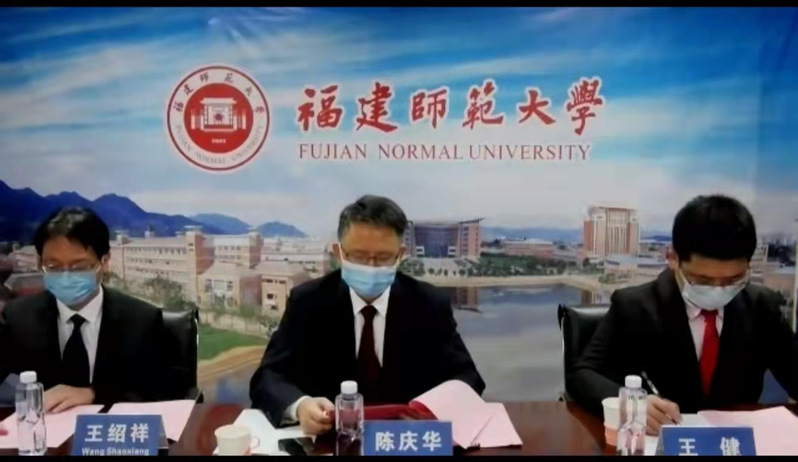 On November 11, Fujian Province and the State of Ceara of Brazil jointly held the Higher Education Cooperation Exchange Meeting through live streaming. More than 50 persons participated including Mr. Yan Yuqing, Chinese Consul General in Recife, Ms. Huang Shaorong, Deputy Director of Foreign Affairs Office of Fujian Province, Mr. Wang Shao, Deputy Director-general of the Education Department of Fujian Province, Mr. Fernandez, Deputy Director-general of the Education Department of the State of Ceara, Mr. Ahuba, Director-general of the Department of Science, Technology and Higher Education of the State of Ceara, Mr. Albuquerque, President of the Federal University of Ceara, Mr. Su Jianhua, Chinese Dean of the Confucius Institute at the Federal University of Ceara, Mr. Amorim, Brazilian Dean of the Confucius Institute, Mr. Suarez, President of the State University of Ceara and representatives of universities including FNU in Fujian Province.