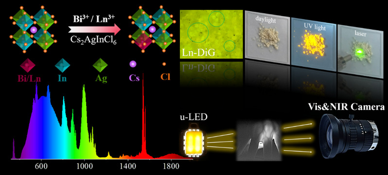 Recently, Prof. Chen Daqin’s team of College of Physics and Energy of FNU, in collaboration with the team of Researcher Chen Xueyuan of Fujian Institute of Research on the Structure of Matter of the Chinese Academy of Sciences, reported a class of lanthanide doped lead-free double perovskites with ultra-broadband continuous emissions in the wavelength range spanning the visible to near-infrared spectral range (400~2000 nm), and developed ultra-broadband light-emitting diodes with compact structure and excellent stability. The research results, titled “Compact ultra-broadband light-emitting diodes based on lanthanide doped lead-free double perovskites”, were published in the journal Light: Science & Applications. FNU is the first unit of the paper, with Jin Shilin, a master candidate of FNU as the first author, and Engineer Li Renfu, and Researcher Chen Xueyuan of Fujian Institute of Research on the Structure of Matter of the Chinese Academy of Sciences and Prof. Chen Daqin of FNU as the co-corresponding authors. The work was funded by the National Key Research and Development Special Project, the National Natural Science Foundation of China and the Natural Science Key Fund of Fujian Province.