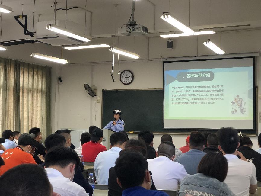 当天下午,校保卫处联合后勤管理处、后勤服务集团举办了校园交通警示教育及交通法规宣传培训会。培训会邀请上街(高新区)交警大队民警为后勤员工开设专题讲座。讲座通过宣传国家及福州市电动自行车相关法规知识,倡导文明交通、安全出行行为习惯养成,播放非机动车交通事故警示视频等,结合近年来涉及师生非机动车典型事故案例分析,为教职员工上了一堂生动的校园交通安全宣传教育课。
