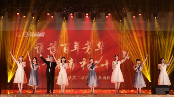 活动经过“班班有诵读”“学院有经典”等阶段选拔,共有10个学院进入现场展演。展演现场,体育科学学院的同学们带来朗诵《红船,从南湖启航》,用饱含深情的声音带我们追溯回那个战火纷飞、热血沸腾的年代。经济学院作品《青春的誓言》,呼吁青年学子应以青年之肩扛起重任,以青春之热血砥砺前行。文学院以一首《青春之歌》用内心感应时代脉搏,自信昂扬,踔厉奋发,尽展青年步履不停、共逐非凡的身姿。